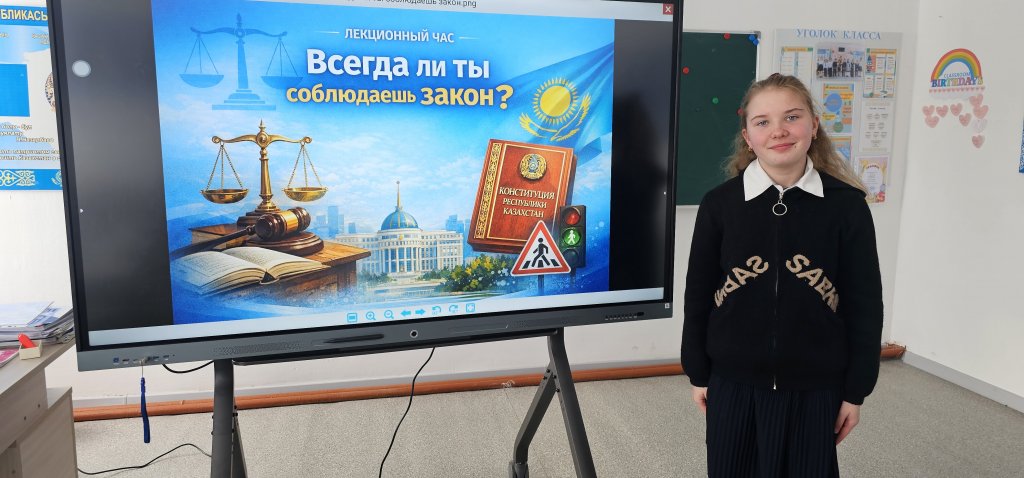 Бүгін 5-сыныпта «Сен әрқашан заңды сақтайсың ба?» тақырыбында лекциялық сағат өтті.